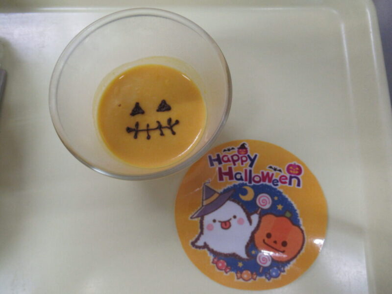 ということでおやつにパンプキンプリンを提供しました。