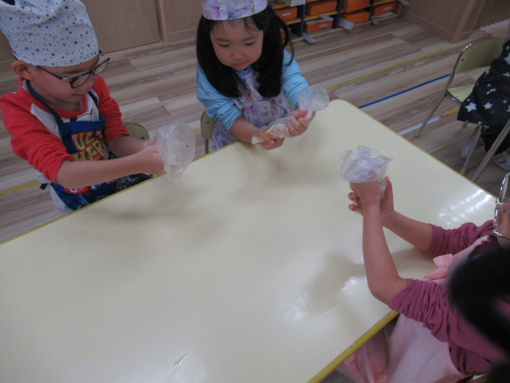 みんなでおいしくな~れ、おいしくな~れとおまじないを掛けながら