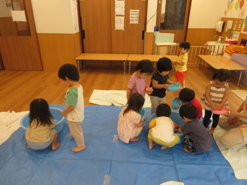 9月後半はまだまだ暑い日が多く、氷遊びをして楽しみました。