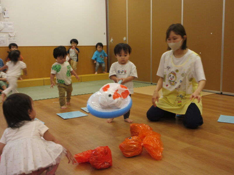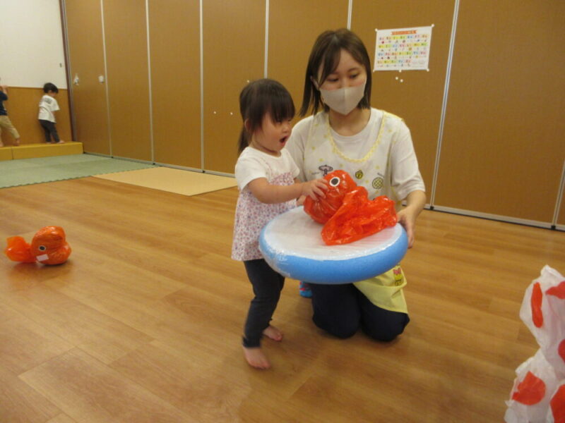 大きなポイを使ってきんぎょすくいを楽しんでいます🐟