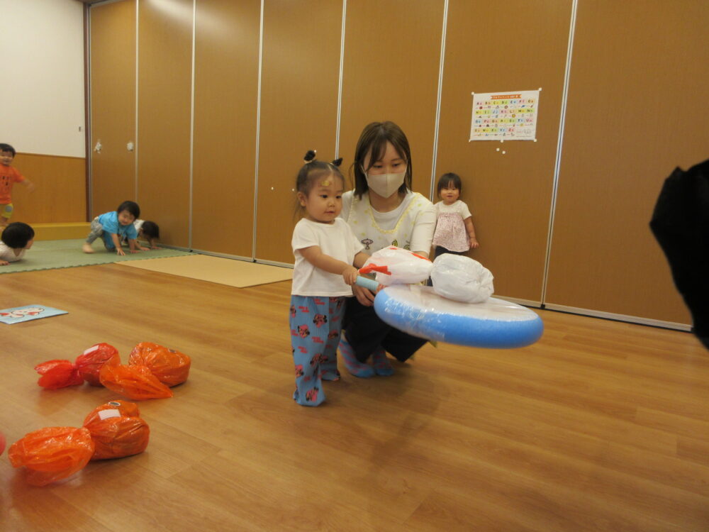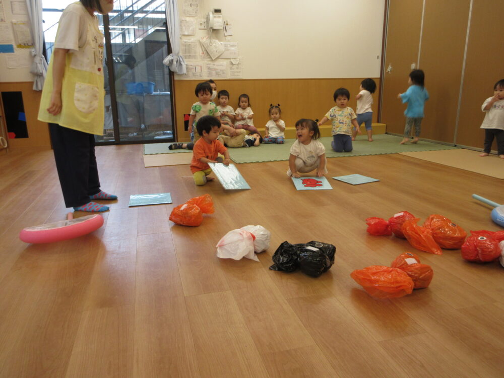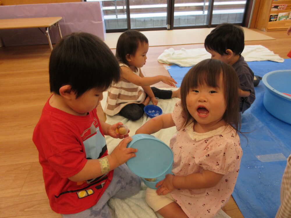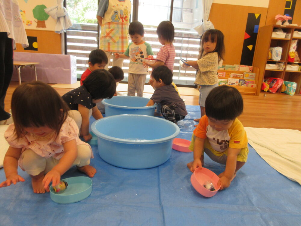 9月後半はまだまだ暑い日が多く、氷遊びをして楽しみました。
