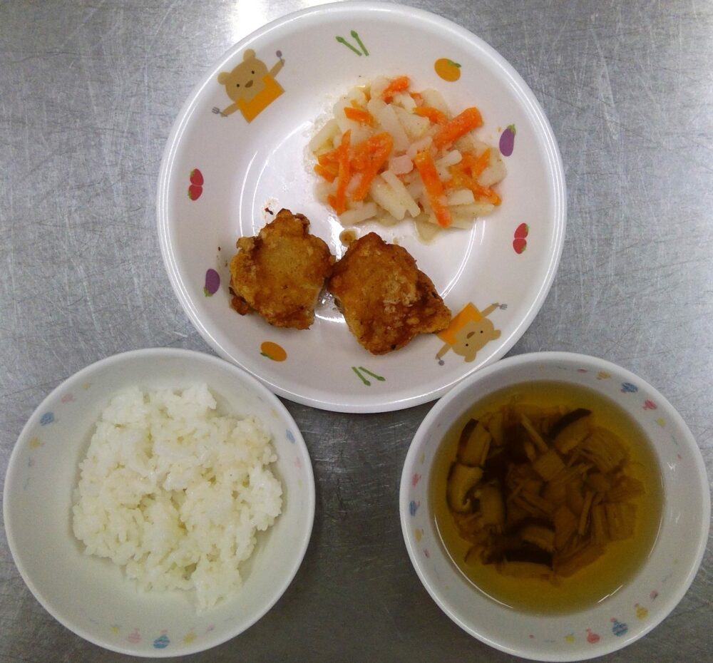 給食は「山賊焼き」「いもなます」「きのこ汁」