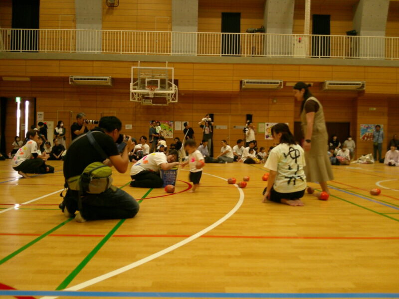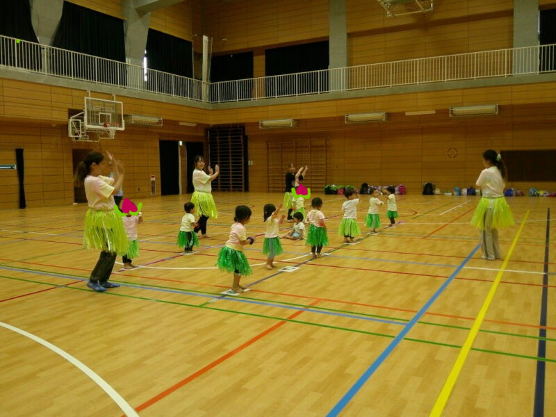 続いて、みかん組は親子競技「それいけ!!みかんぐみ!!」と親子ダンス「どうぶつたいそう1・2・3!!」