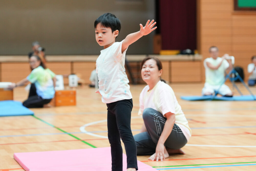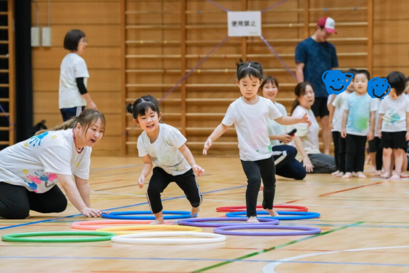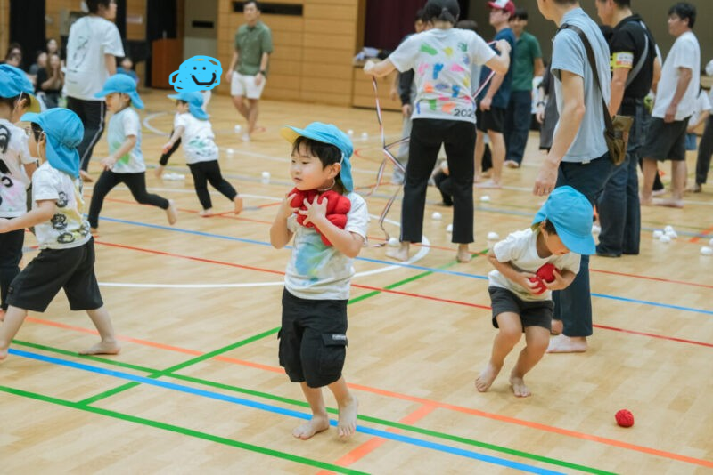 親子競技「どっちがおおい!?紅白玉投げ」では大人VS子どもで対決!😆