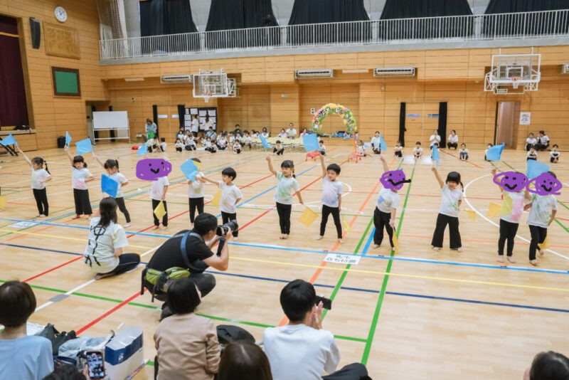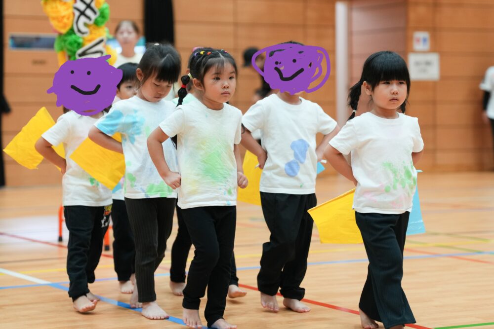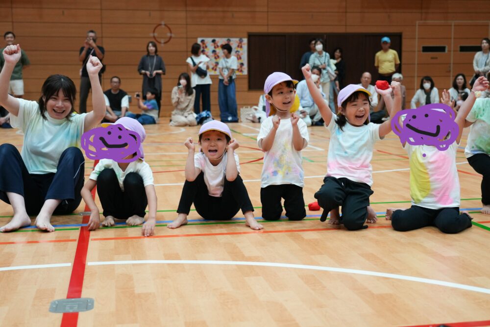 隊形移動にも挑戦し、取り組みの時からお気に入りの「ピーハラピーハラ」というフレーズを口ずさみながら…片足をぴょこんと横にあげる振りも可愛く決まり、楽しく踊ることが出来ましたよ🥰