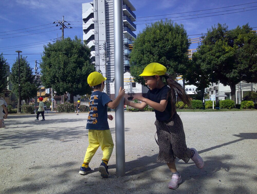 散歩先の公園では思い切り身体を動かすことができるので、元気いっぱいなつき組さんはしっぽ取りゲームや追いかけっこを楽しみます。
