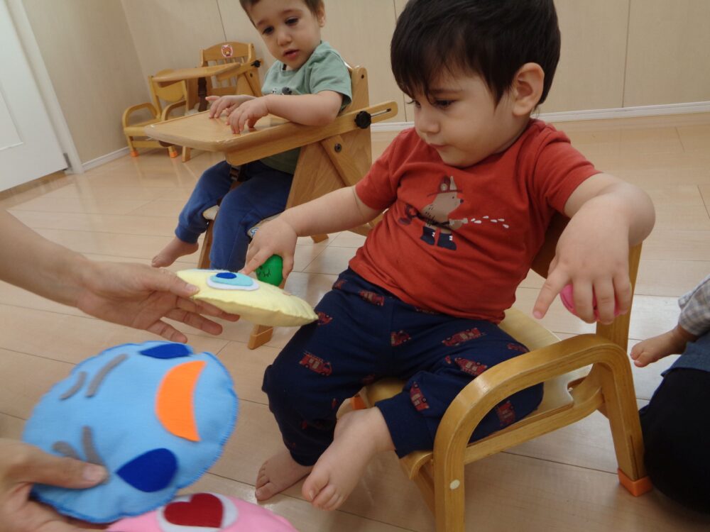 最初は緊張していた2人も、最後はニコニコでタッチできました!これからも、少しずつ慣れて一緒に楽しんでいきたいと思います!そして来週は英語の先生とハロウィンパーティーなので、みんなの仮装姿も楽しみです🎃♪
