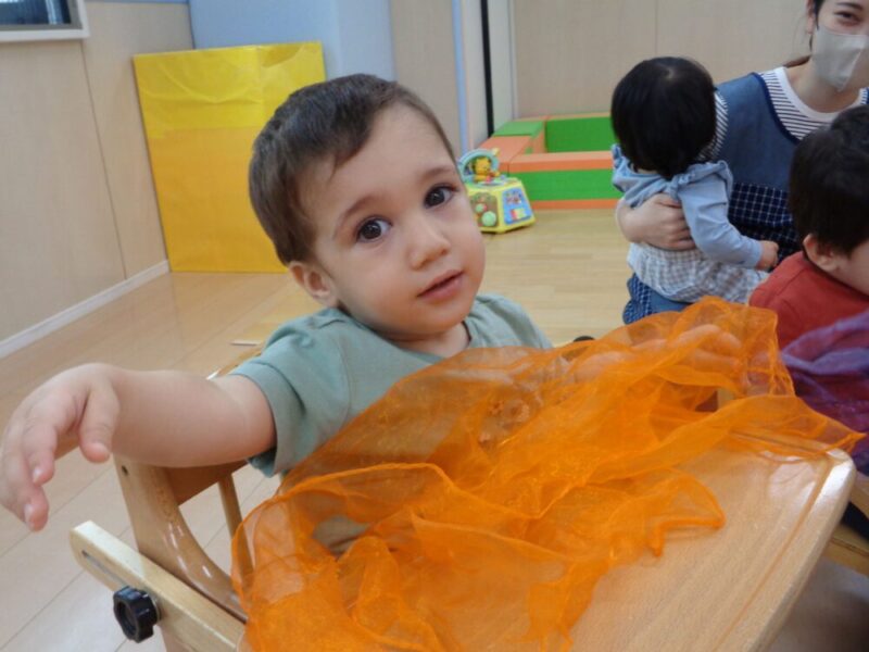 スカーフで「peek-a-boo!」も楽しみました!普段からみんな「いないいないばぁ」が好きで「ばぁ!!」と可愛い表情を見せてくれているので、この時には緊張も解けてきて笑顔が見られました😊