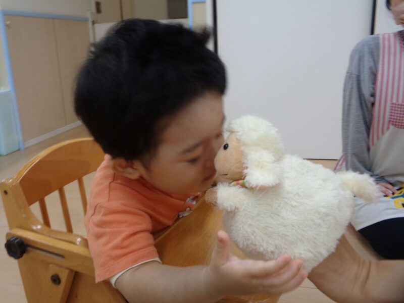 そして終わりの挨拶。最後にヒツジさんのパペットとタッチするのですが、大興奮で終始楽しんだお友だちは、手ではなくお顔を近づけてご挨拶していて可愛かったです💕