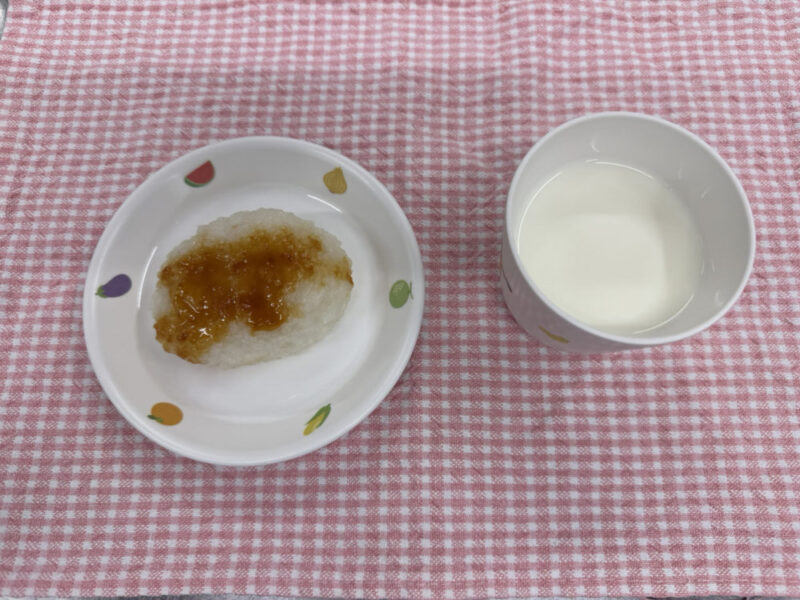 おやつは五平餅、牛乳です!