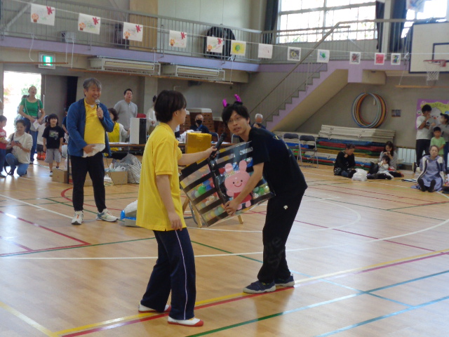 子どもたちがパワーをためている間、卒園児・保護者の方も競技に参加してくれました。