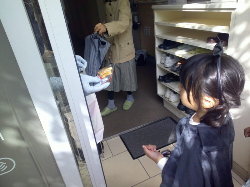 「トリックオアトリート!」「ありがとう」としっかりと最後まで上手に言えてお菓子を貰って嬉しそうにしています😊