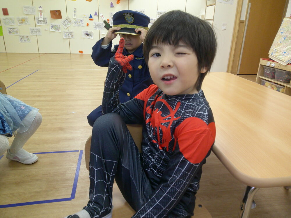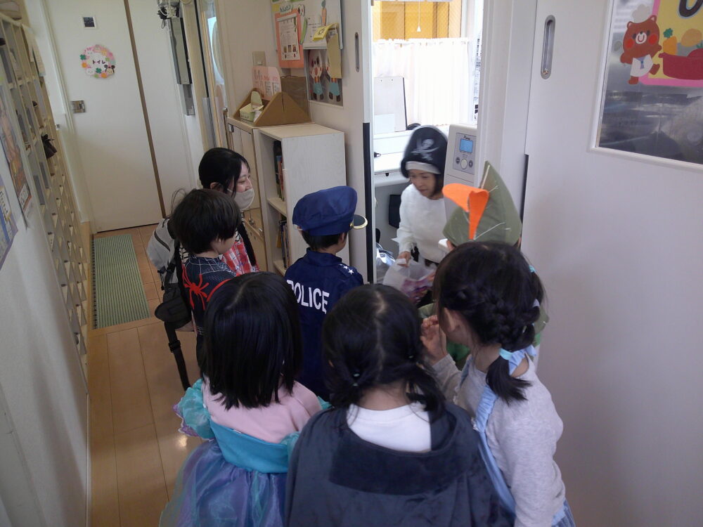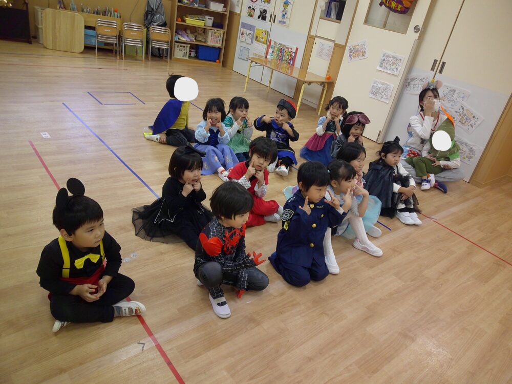 園長先生に「トリックオアトリート!」と大きな声で伝えると仮装した園長先生が登場‼️‼️「かっこいい~」と声をそろえて言っていました🤩