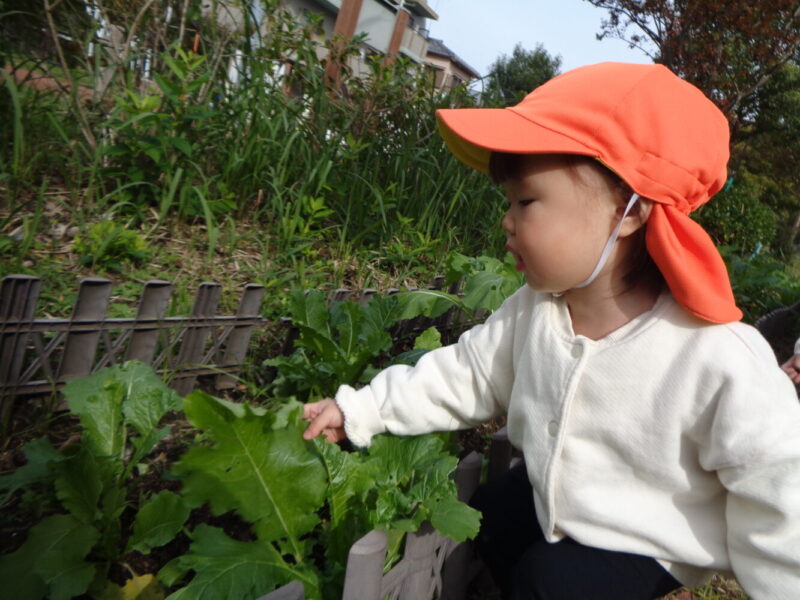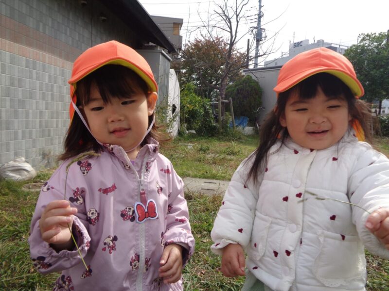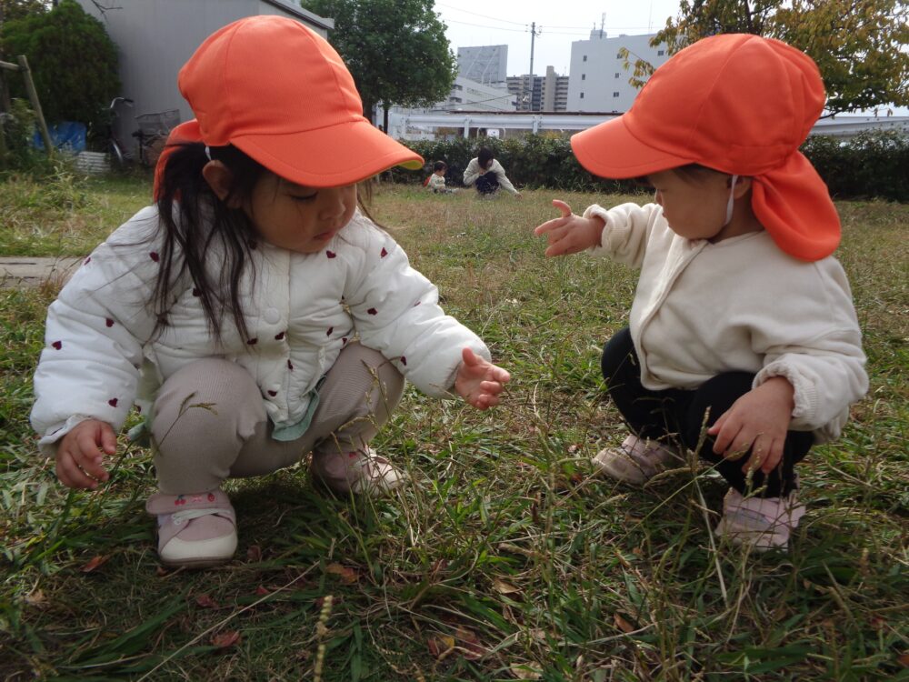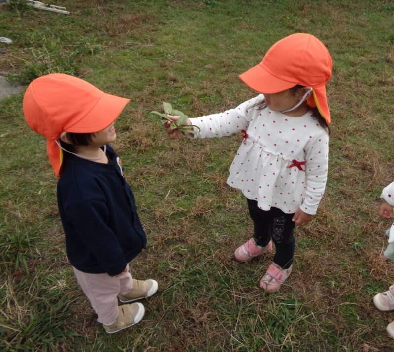 落ち葉や花などをひろってお友だちや保育者に「みてみて!」と嬉しそうに