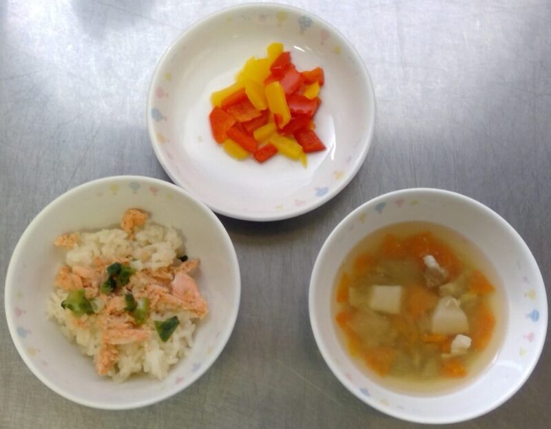 給食は「はらこめし風」「パプリカの和クルス」「芋煮」