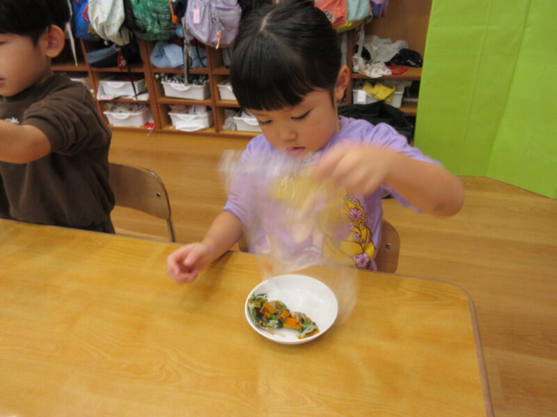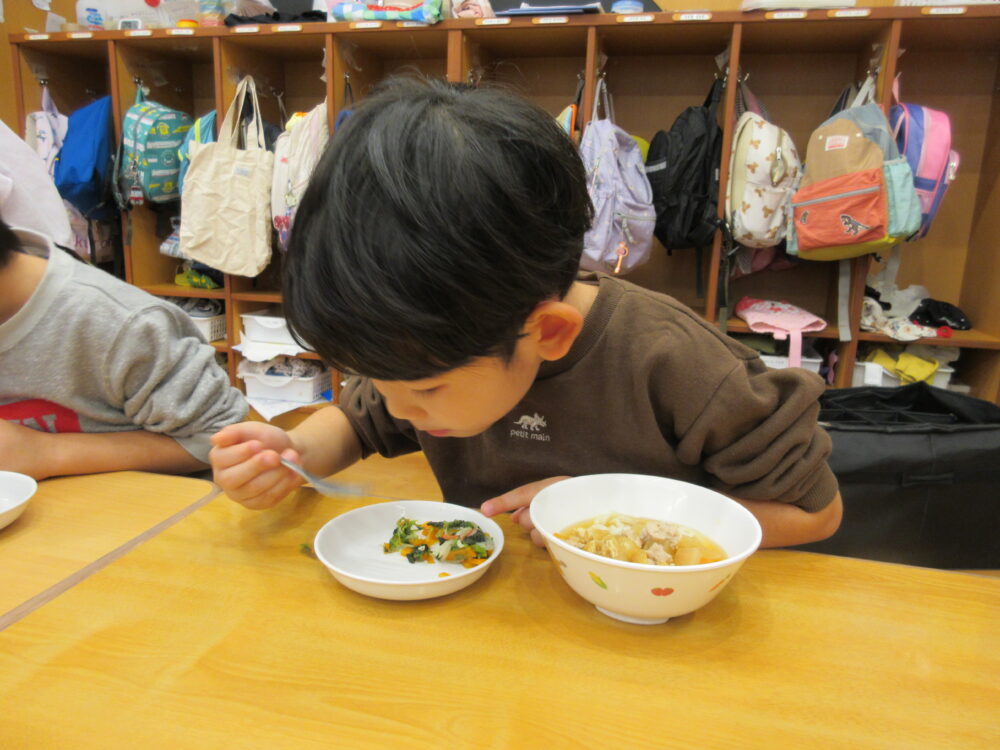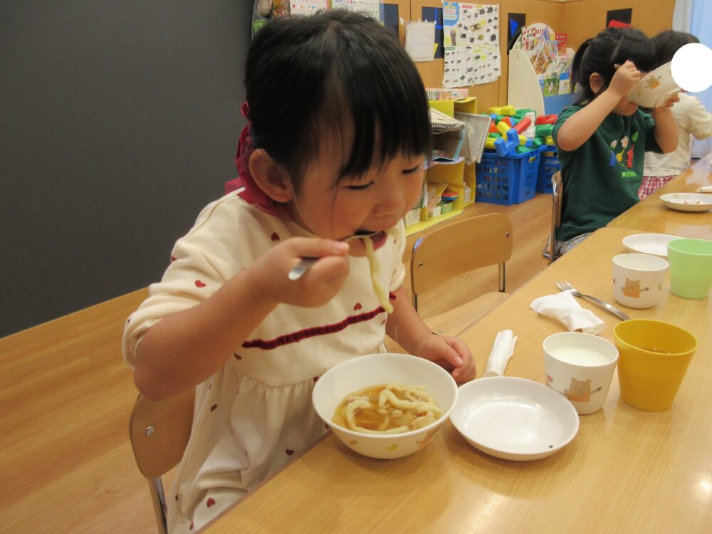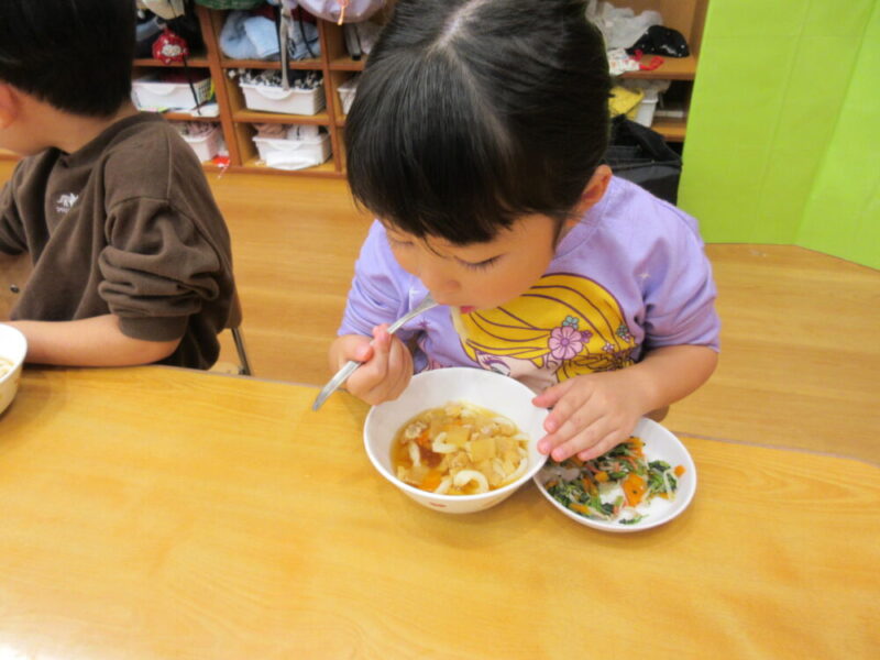 ナムルもうどんもおいしい!とパクパクと食べ進め、おかわり!と食欲旺盛なひまわり組さんでした😊
