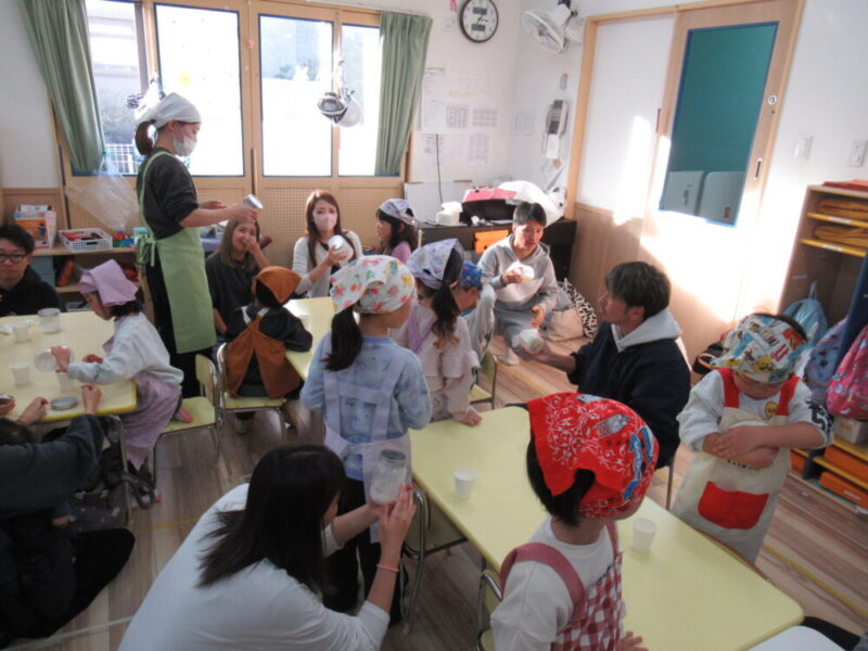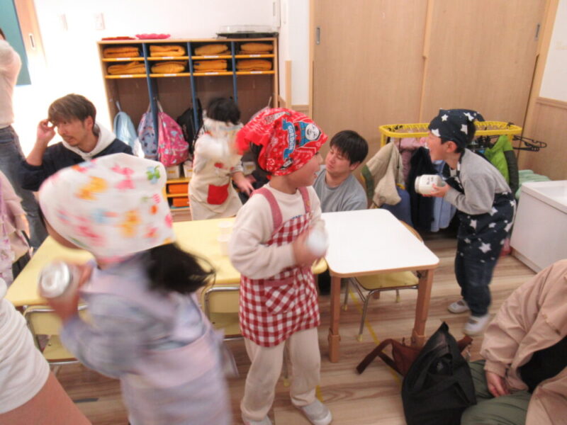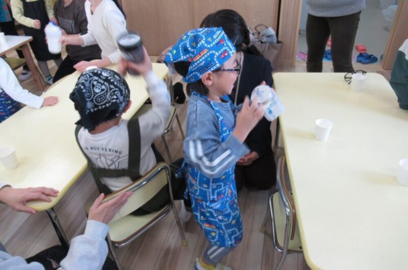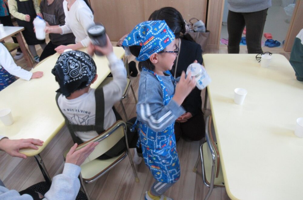 「バター作り」に挑戦しました!親子で容器を振ったり、