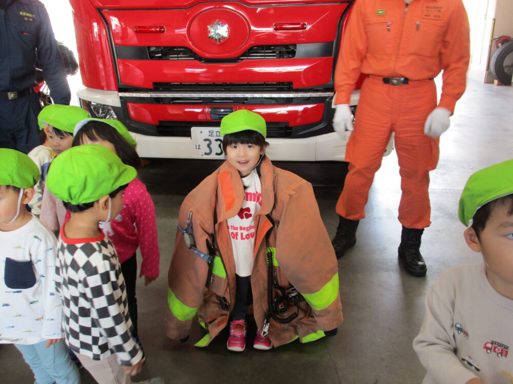 他にも、出動時に着る制服を順番に着せてもらったり、救急車の運転席に座らせてもらったりととても良い体験が出来てみんな大喜びでした!