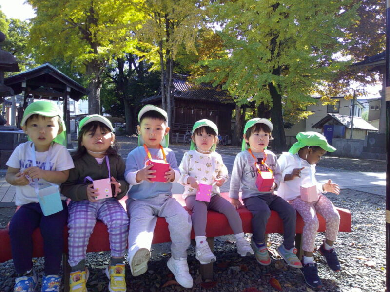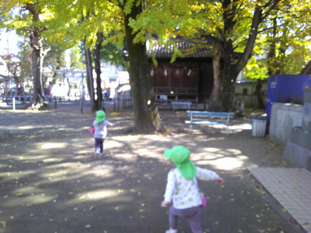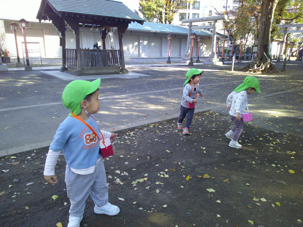 お散歩に出掛けると紅葉や木の実に心が躍るめろん組です。今回は秋を見つけに千住神社に行きました♪