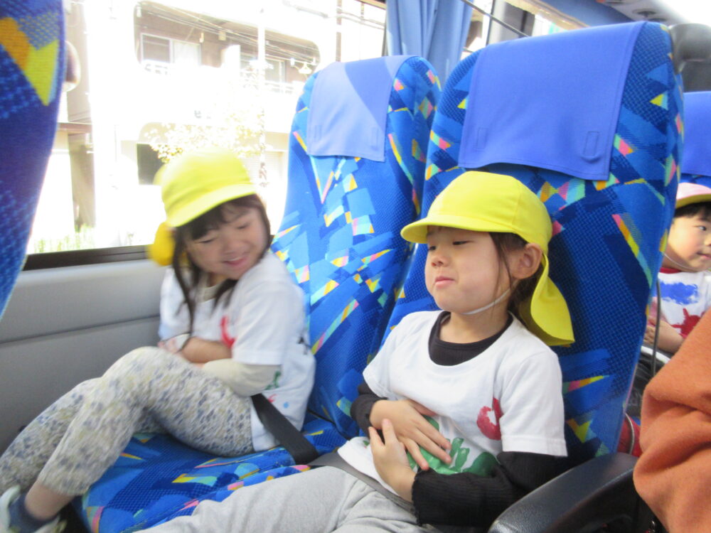 大きなバスでのお出かけは2回目の、ひまわり組さんです。バスの中では、歌を歌ったりバスレク(簡単なゲーム)をして過ごしました。