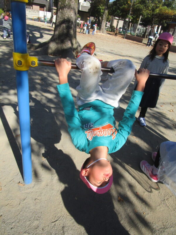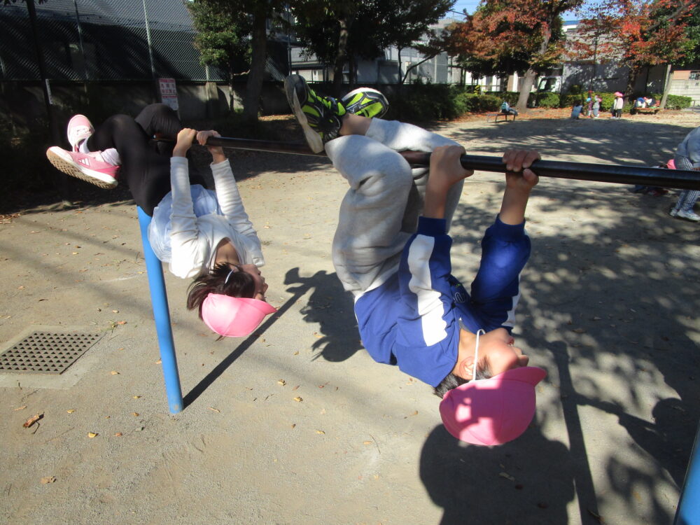 ブタの丸焼きや、足掛け回りにも挑戦しています!体操教室で教えてもらったことを公園でも行っています♪