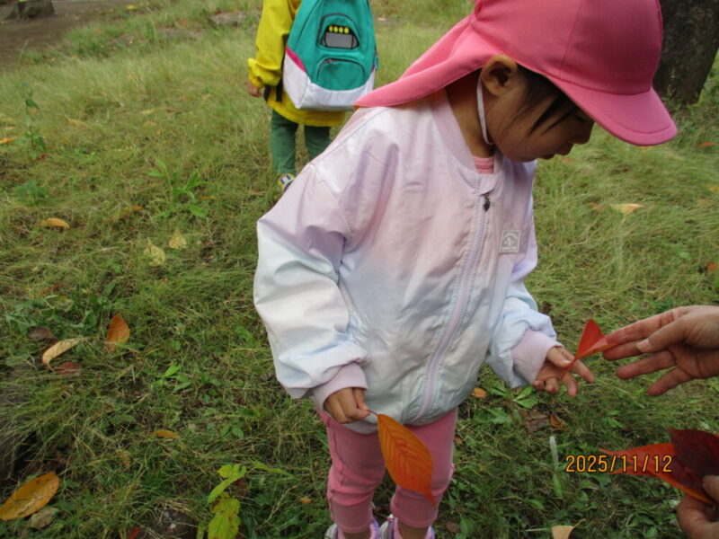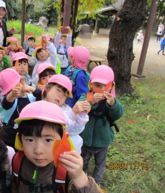 3歳 ゆり組が秋の一日、「秋探し」の散歩に行きました。