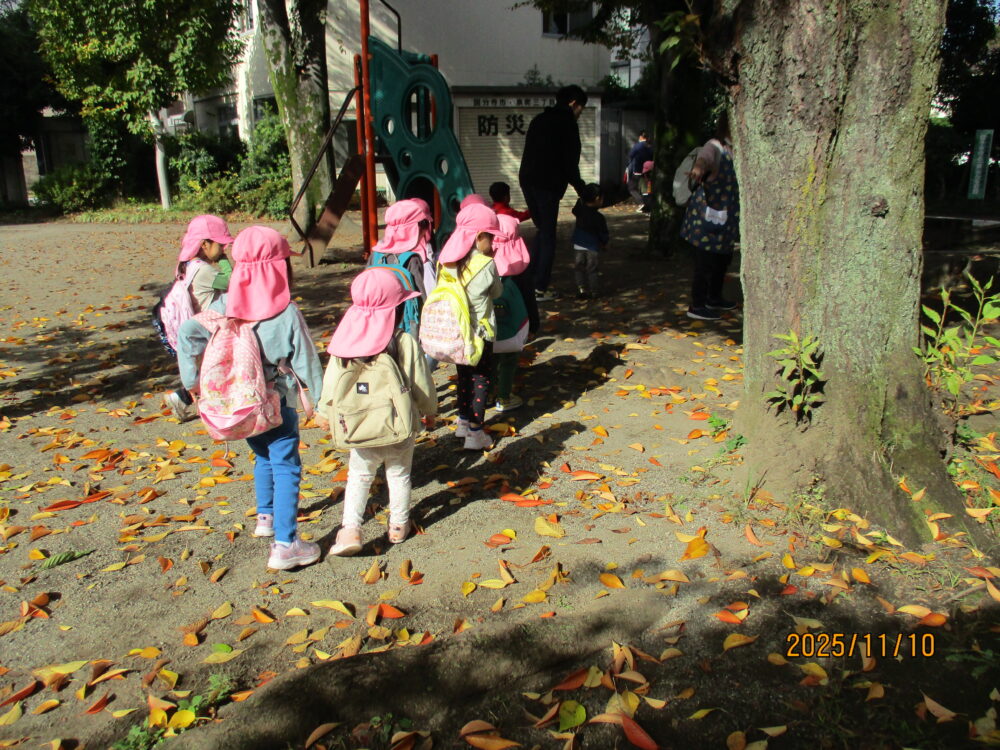 3歳 ゆり組が秋の一日、「秋探し」の散歩に行きました。