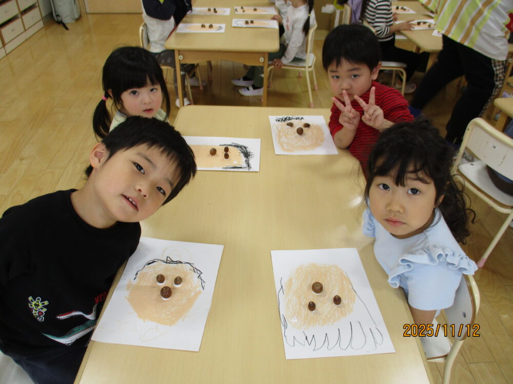 そして拾ってあったどんぐりを「目」や「鼻」にしました。