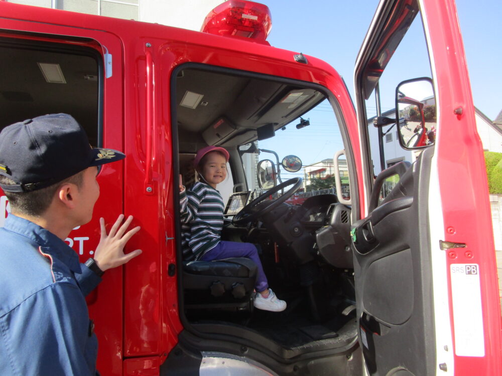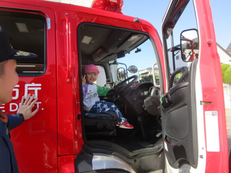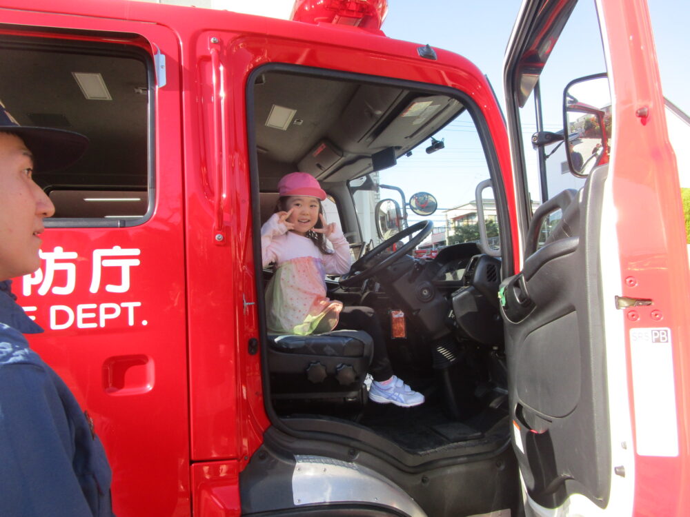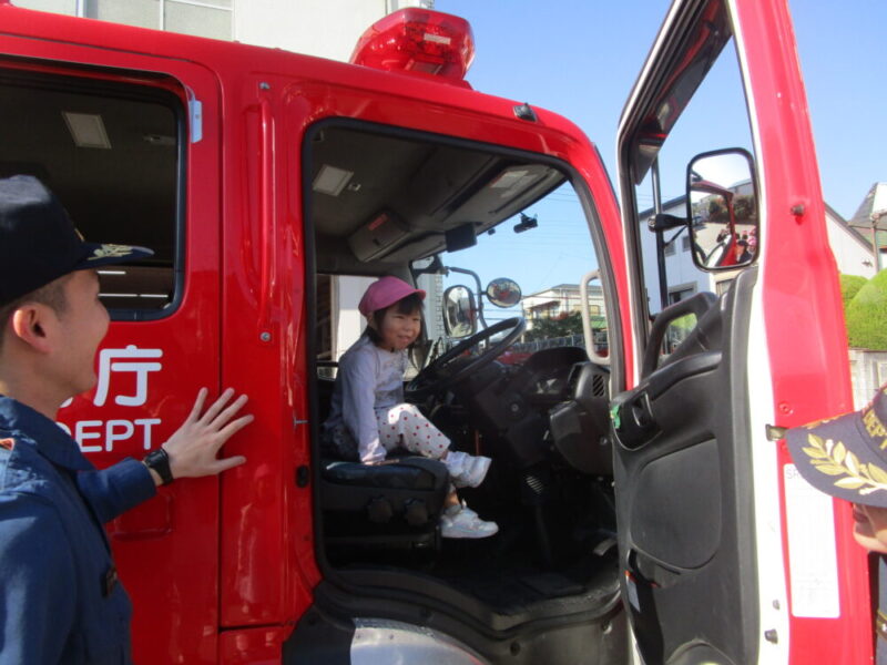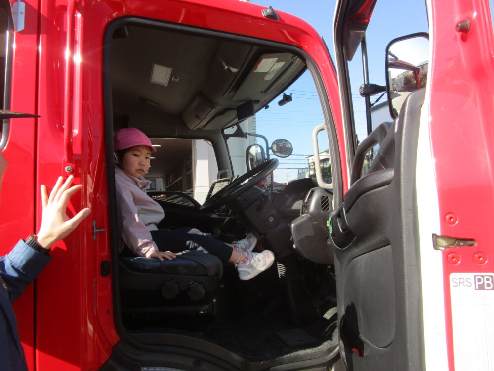 見学では消防車に乗せもてらいました!「高い~!!」と驚きながらもとても嬉しそうでしたよ♪