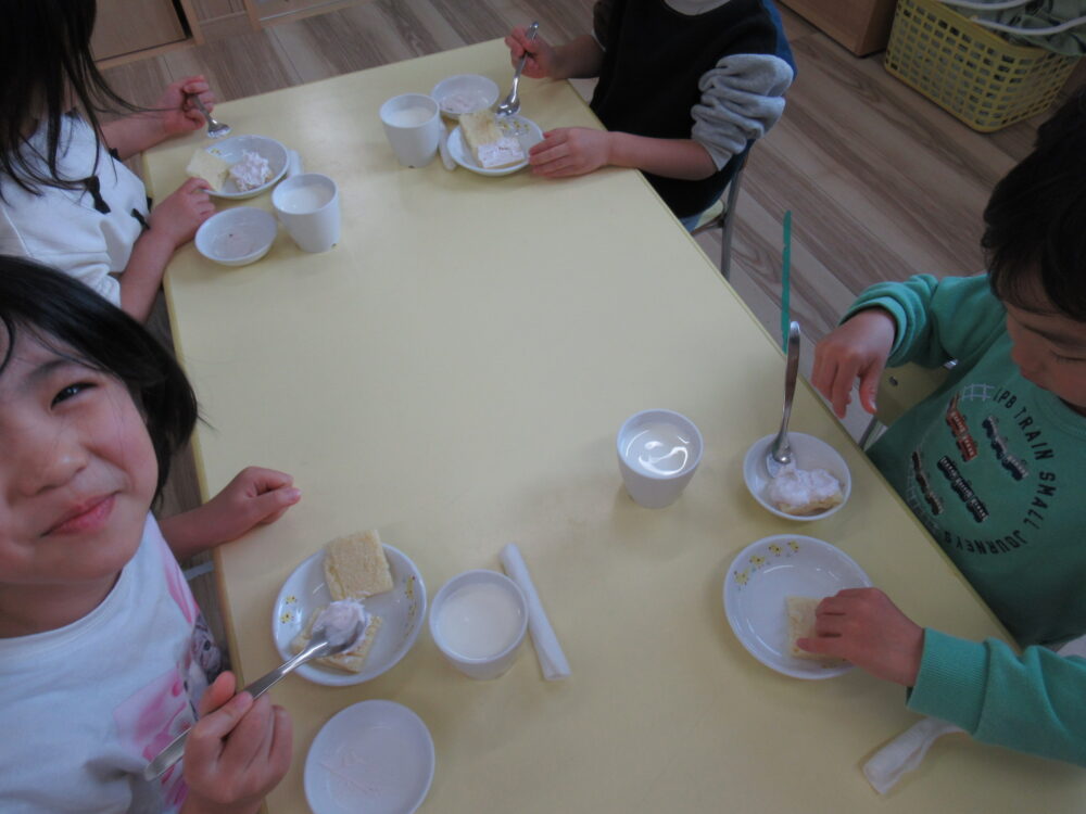 こちらもおやつの少し前に牛乳の変身についてクイズを出しました。