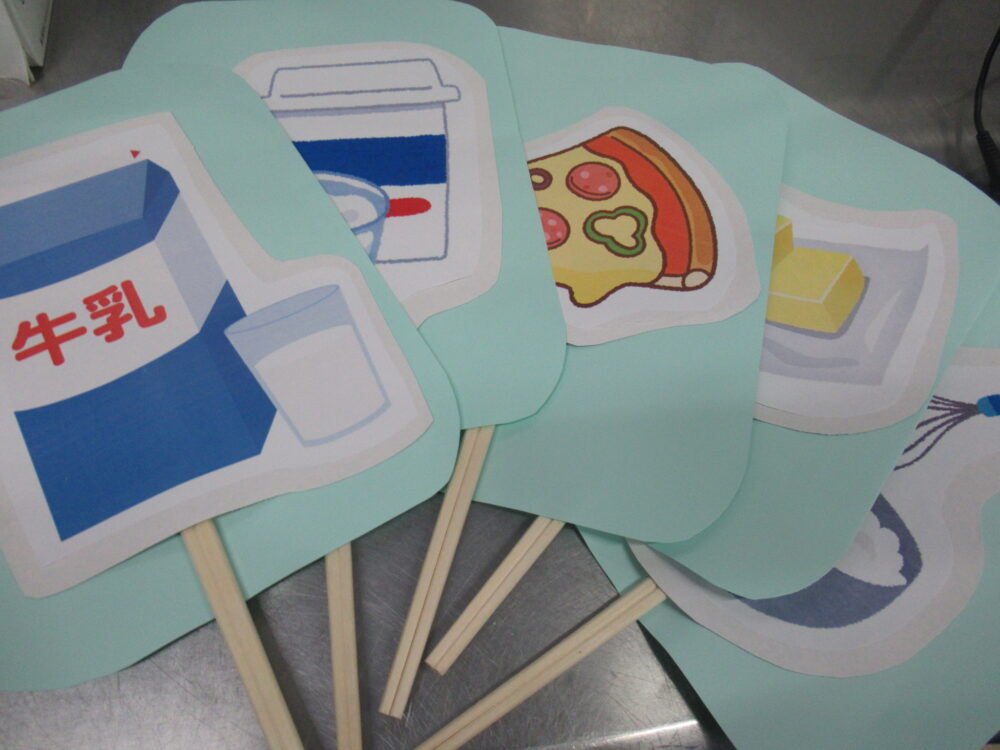 「牛乳からいろんなものができてるんだねっ」と伝えました。