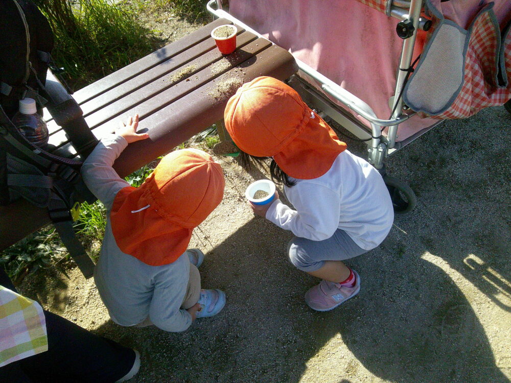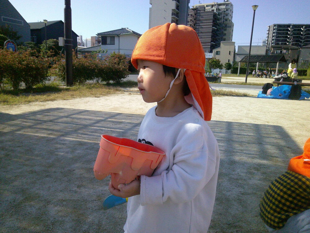 お散歩が大好きなみかん組さんは、最近お砂場セットで遊ぶのがブームです♪ お散歩に行く準備をし、何を持って行くか聞くと「お砂場セット~!」と嬉しそうに答えています(#^.^#)
