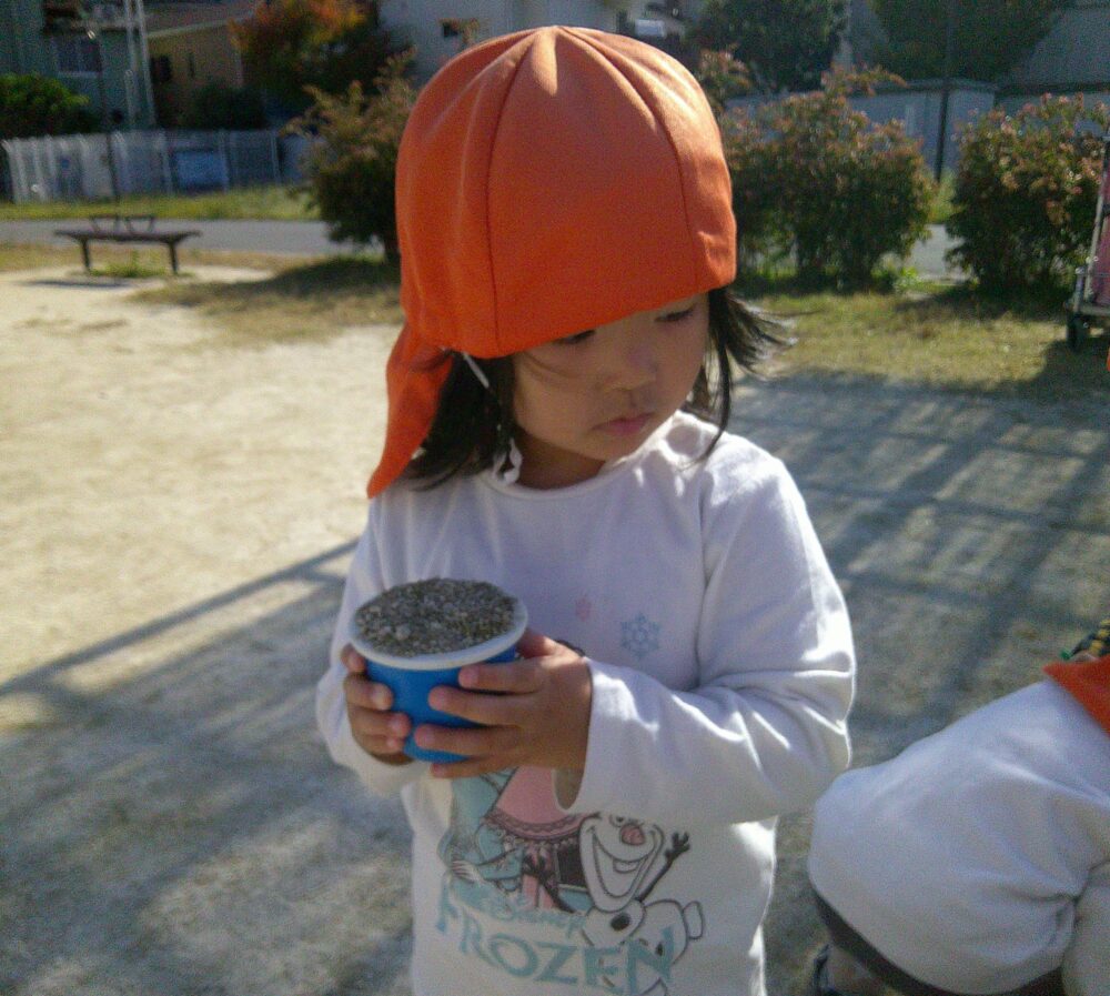 最後はこんなに山盛りに入れたのを保育者に嬉しそうに見せに来てくれましたよ!