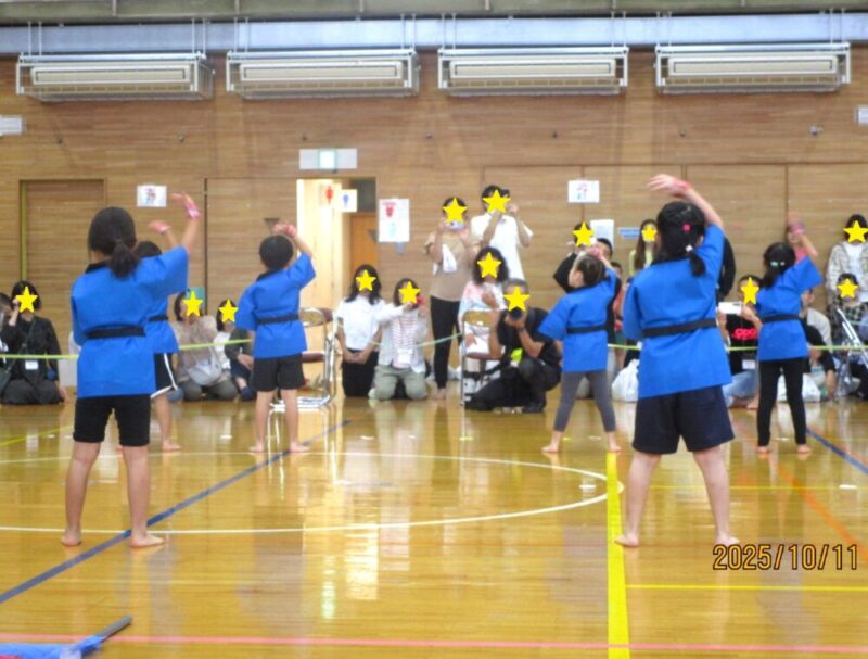 いつも楽しく体を動かしている体育指導の種目を、大勢の前で堂々と披露することができました!