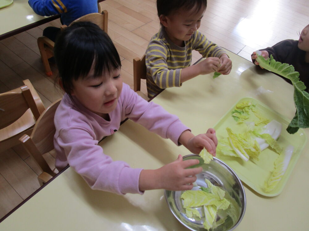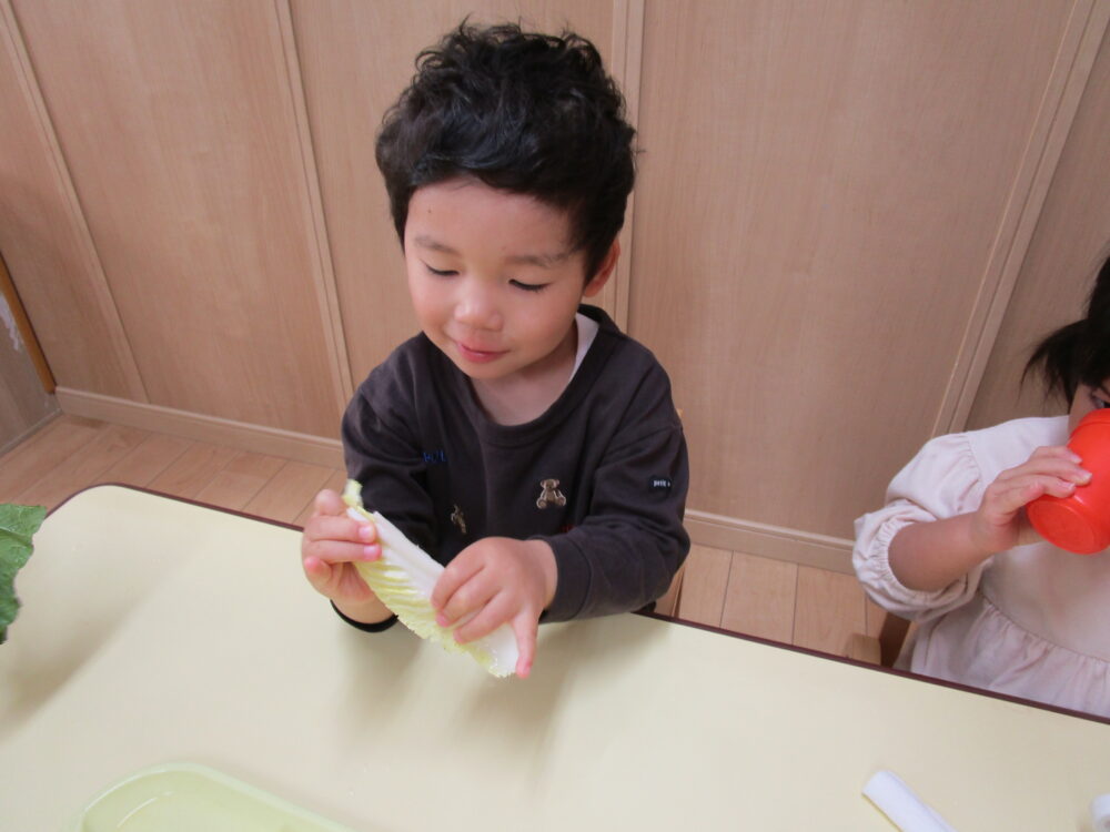 いつもの食事でよく見るお野菜だったので、白菜を見た瞬間にみんな喜んでいました。