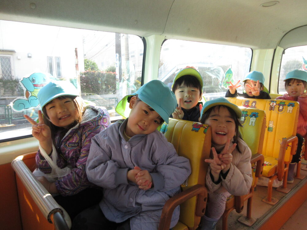 バスの中ではワクワクドキドキの姿が・・♪ 「楽しみだな~~大根使ってなんの料理する~?」とお話をしたり、違うお話の「サンタさんに何貰う~?」と楽しいお話を沢山しました😊