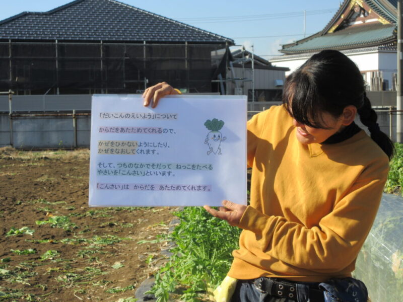 農園に着いてからはまず大根についてイラストを見ながら農園の方から話を聞きました!