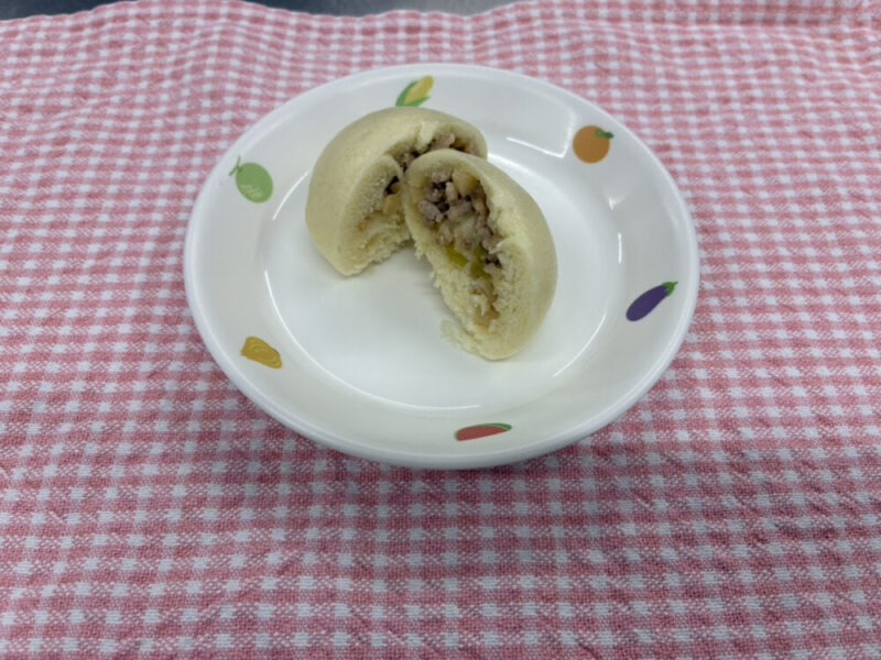 肉まんは天津包子(ケンチンパオツー)という名の中国の饅頭を日本人に馴染むように「肉まん」と名付けました。今回はホットケーキミックスで生地を作りあんは肉と竹の子、ねぎを包んで蒸しました。甘さのあるふんわりとした生地と肉のあんがマッチし、おいしく出来上がりました。