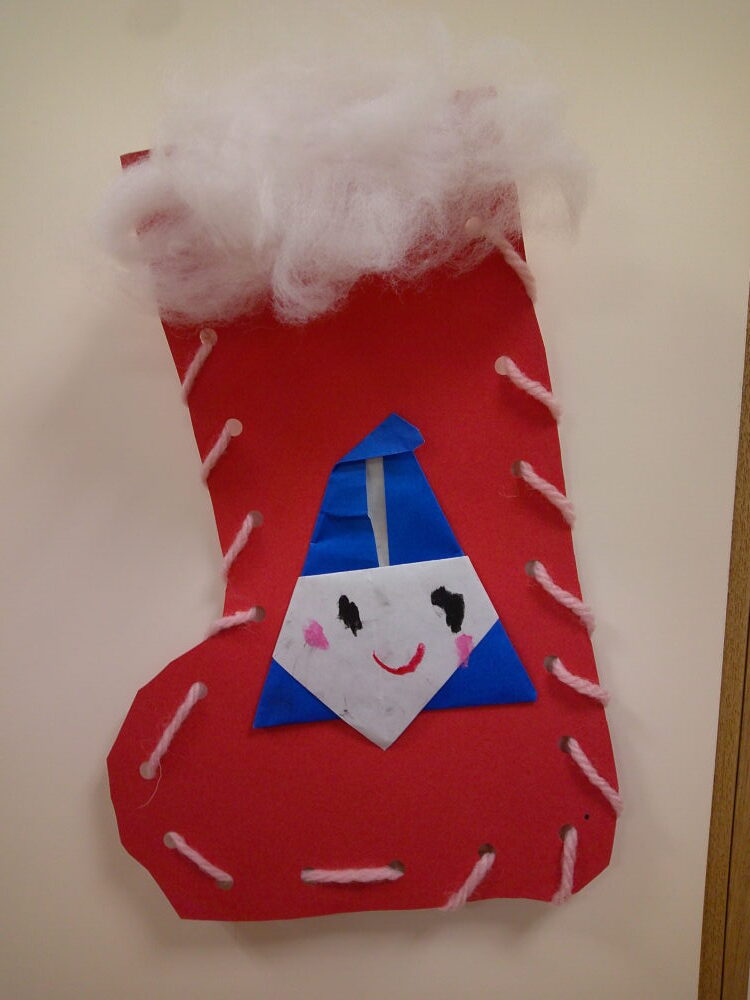 靴下に付けるサンタさんは、折り紙で折りました🎅