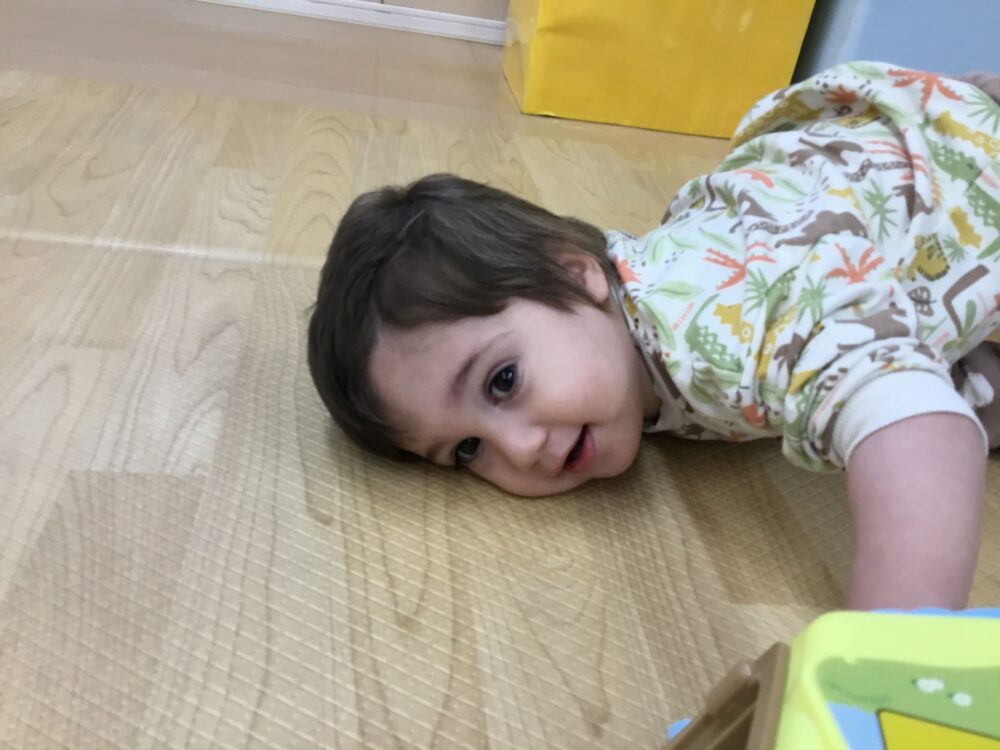 時にはニコニコしながらマットの上でごろ~ん。休みたい時もあるよね😊