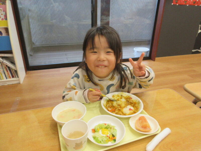 25日クリスマスの日の給食はなんとオシャレなカレーライス⛄でした♫
