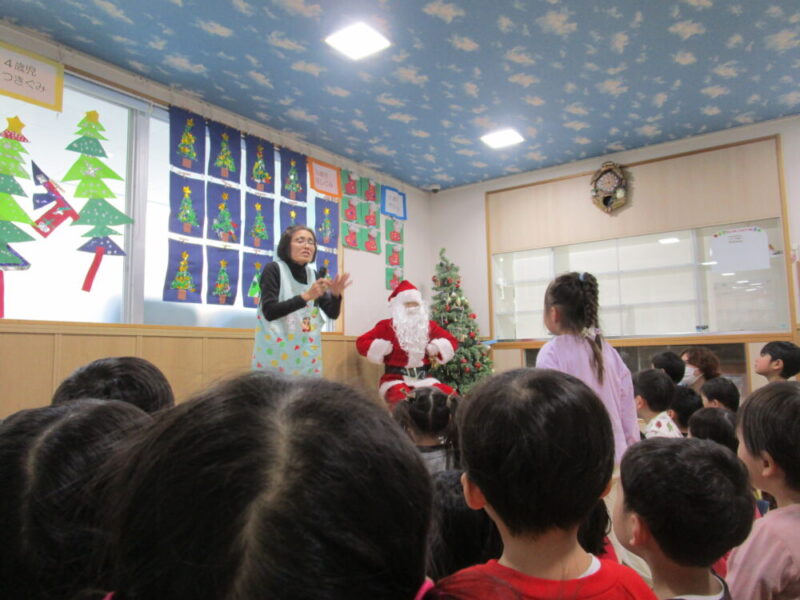 12月25日みんな待ちに待ったクリスマス会。朝から楽しみに保育園に来る子供たち。