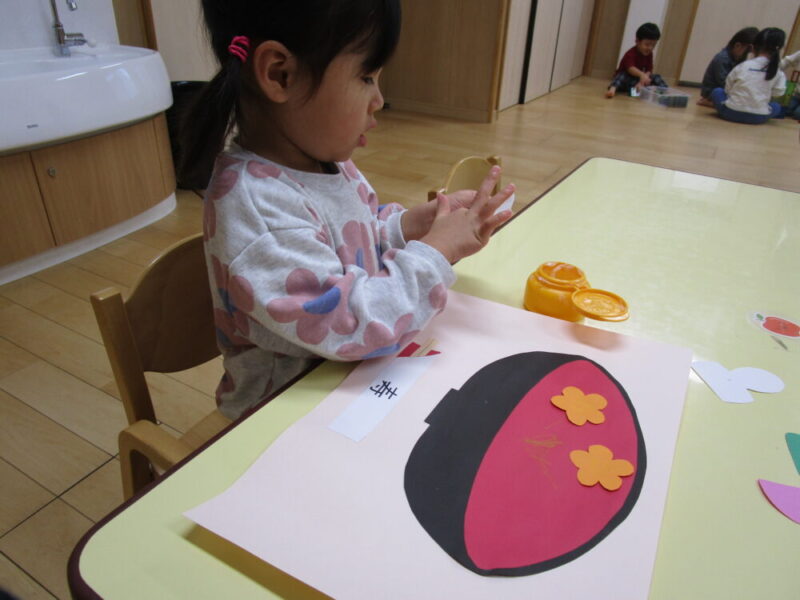 八広園【2歳児 くも組】1月の製作~お雑煮~