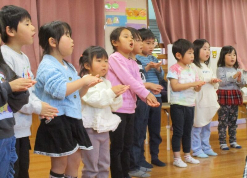 最後は皆で「もちつき」の歌を歌いました。ペッたんぺったん♪の振り付けも上手ならいおん組さんでした♪
