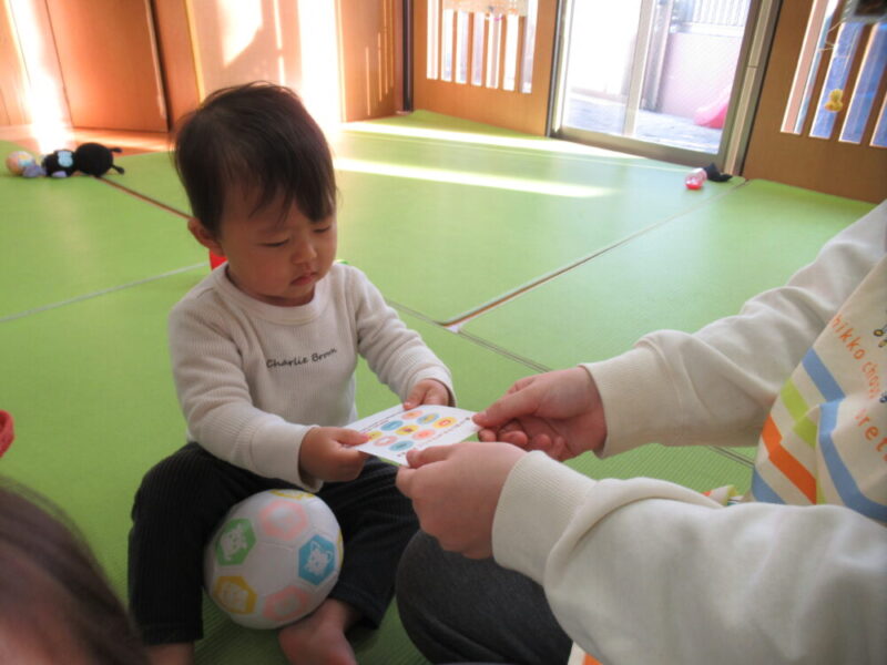 新しい年がスタートし、子ども達も元気な姿で登園してくれました!この日は先生達から「年賀状」をみんなに手渡ししましたよ。今年もよろしくね♪