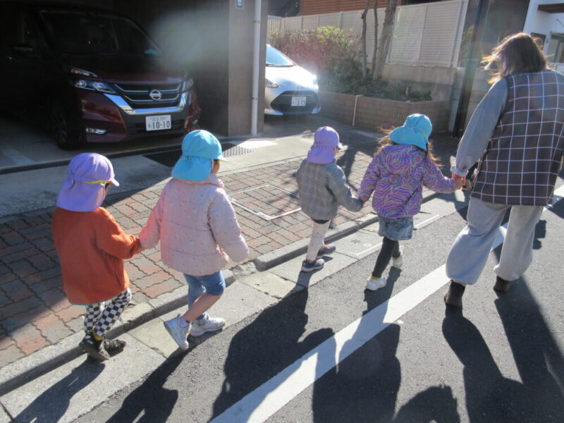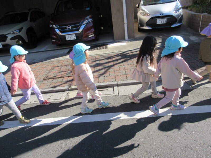 ゆり組になると、お散歩ロープではなくお友だちと手を繋いで散歩に行きます。