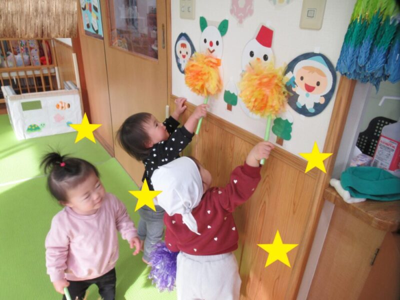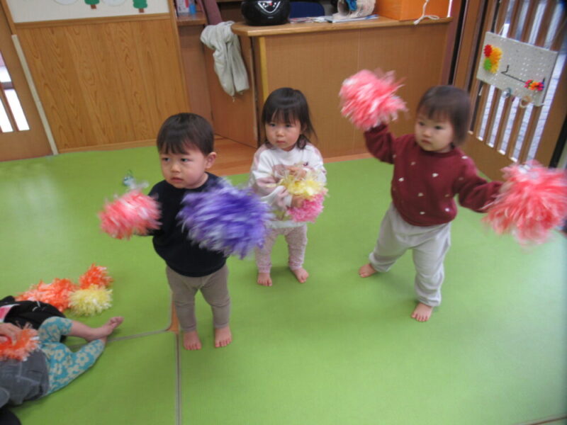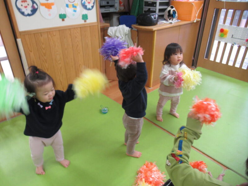 発表会で使うポンポンを持ってダンス♪先生達の真似っこも上手になってきました。当日も元気いっぱい踊ってくれるといいな☆