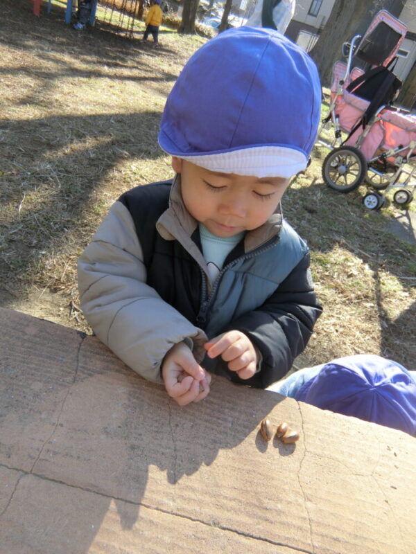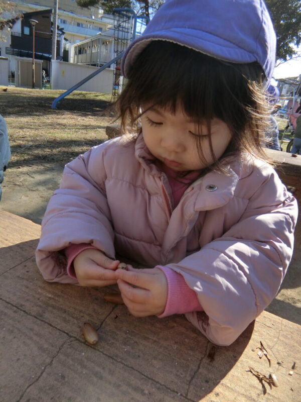 秋からどんぐり拾いや葉っぱ集めが大好きになったうさぎ組さんですが、