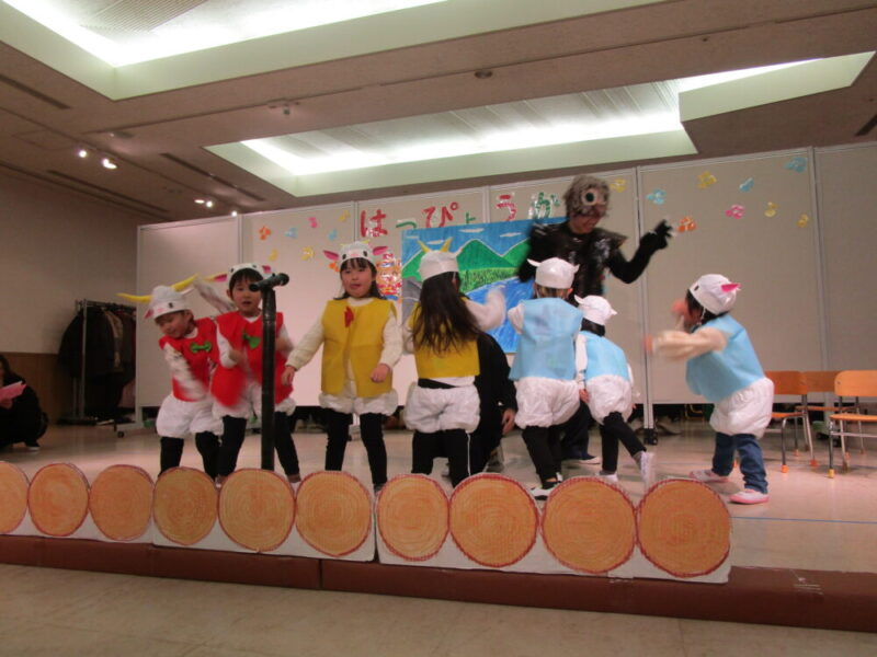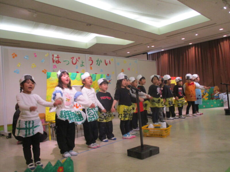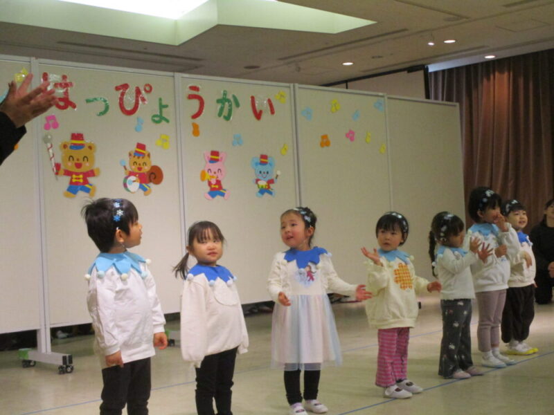 1月17日発表会が行われました。子ども達は少し緊張しながらも楽しんでお父さんやお母さん、見に来てくれた方の前で発表することができました。年長さんは最後の発表会で皆の手本となりとても上手でした。一部ですがその様子をご覧ください。