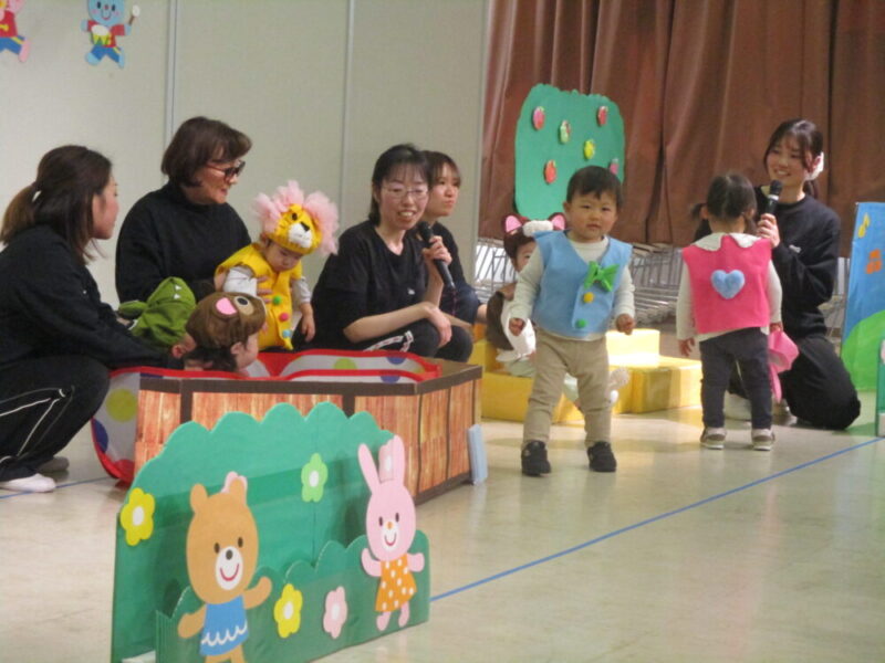 1月17日発表会が行われました。 あひる組さん、りす組さんは緊張したり、涙を見せることもありましたがお父さんやお母さん、見に来てくださった方の前で発表することができました。その可愛らしい様子をご覧ください。